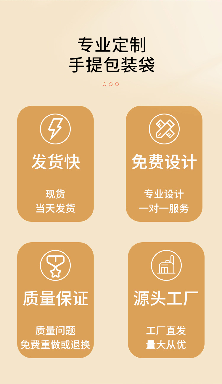 4. 定制设计:客户可以提供自己的设计图或者让供应商进行设计,包括袋子的图案、LOGO、文字等。