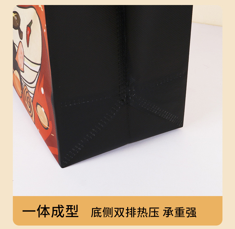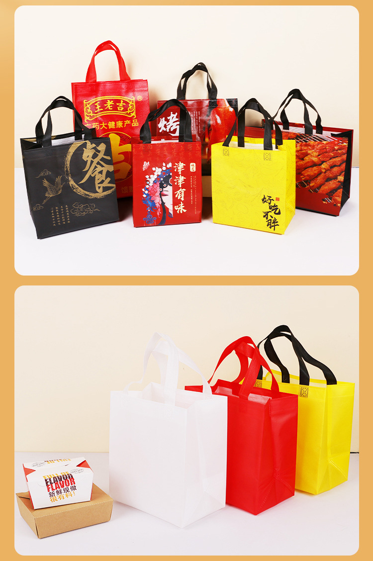 3. 材质选择:无纺布覆膜外卖袋的材质有多种选择,如PP无纺布、PE无纺布、复合无纺布等。客户需要根据使用环境和要求选择合适的材质。